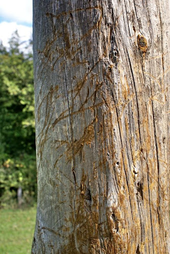 Poste de madera con rozaduras de ciervo