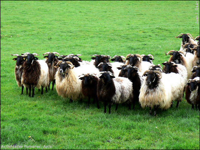 Por otro lado en la la última foto, las ovejas de la izquierda no me parecen Latxas, ya que esa disposición de los cuernos y esos vellón de dos colores no me cuadra con Latxa, pero no se que pueden ser.