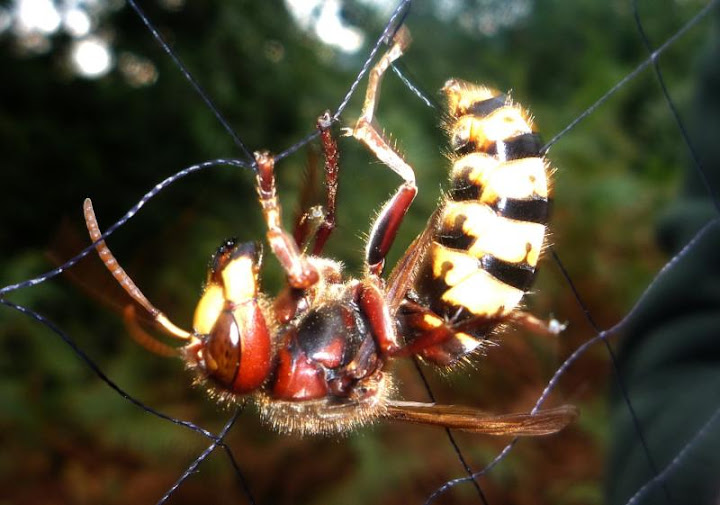Pues si, era una señora avispa. Eso que se ve es una red japonesa para cazar paseriformes y no tiene la maya pequeña y la j... avispa rompía la red.